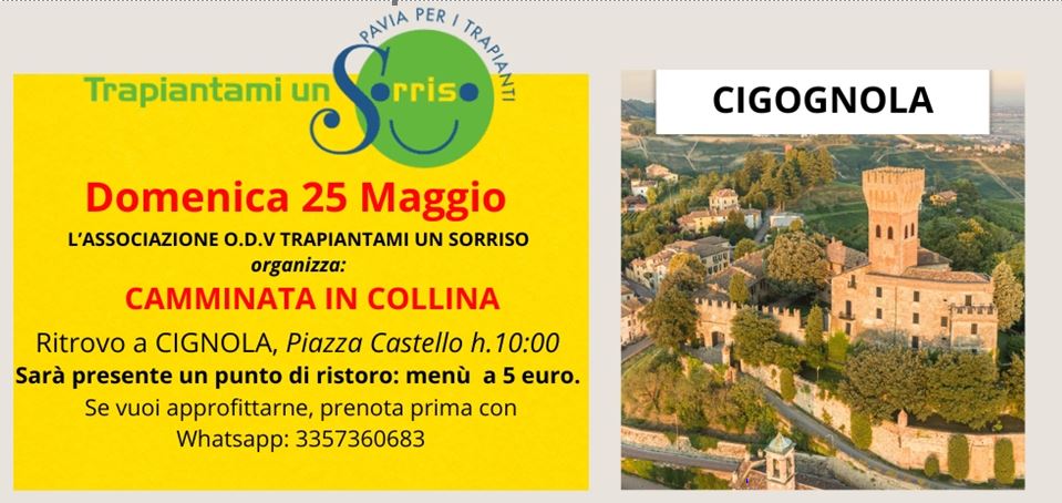 Camminata in Collina 25 maggio 2025 h. 10 Cigognola (PV) Associazione Trapiantami un Sorriso